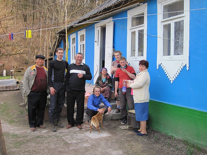 Было решено не ехать постоянно по «автобанам», а и посетить сельскую местность с её грунтовыми дорогами и гуляющим местным населением (дело было в воскресенье-Пасха). По сельским дорогам оказалось ориентироваться тяжело. Вскоре мы потеряли дорогу. Зато нас нашли около 20-ти забавных детишек в возрасте от 5 до 15 лет, не говорящих на русском языке. Складывалось впечатление, что они вот-вот забросают нас камнями. Все обошлось. Необходимо было узнать дорогу на Непадву и купить домашнего вина. Зашли во двор к местным жителям. Продавать вино они нам отказались, зато налить по стаканчику пригласили… Провели мы у них с 1,5 часа. Было выпито не менее 1,5 литра вина , 1,5 литра пива и съедено немало закуски. Мужик-лесник дал нам свой номер моб. телефона: «Если что, уродов везде хватает, звони – через 10 минут приеду на мотоцикле с ружьем!!! » Дальше ехали вдоль Днестра, любуясь красотой его вод и берегов при закате солнца. До женского монастыря в Жапках добирались по темну. Монашки устроили нам теплый прием. Накормили в трапезной. На ужин у нас было такое меню: рыбный суп, котлеты, блинчики с вишней двух видов, торт, хлеб, хрен, кувшин красного вина и домашнего кефира. И всего этого было очень много. Также дали нам с собой «немножко» еды в дорогу. Ночевали в отеле при женском монастыре)).