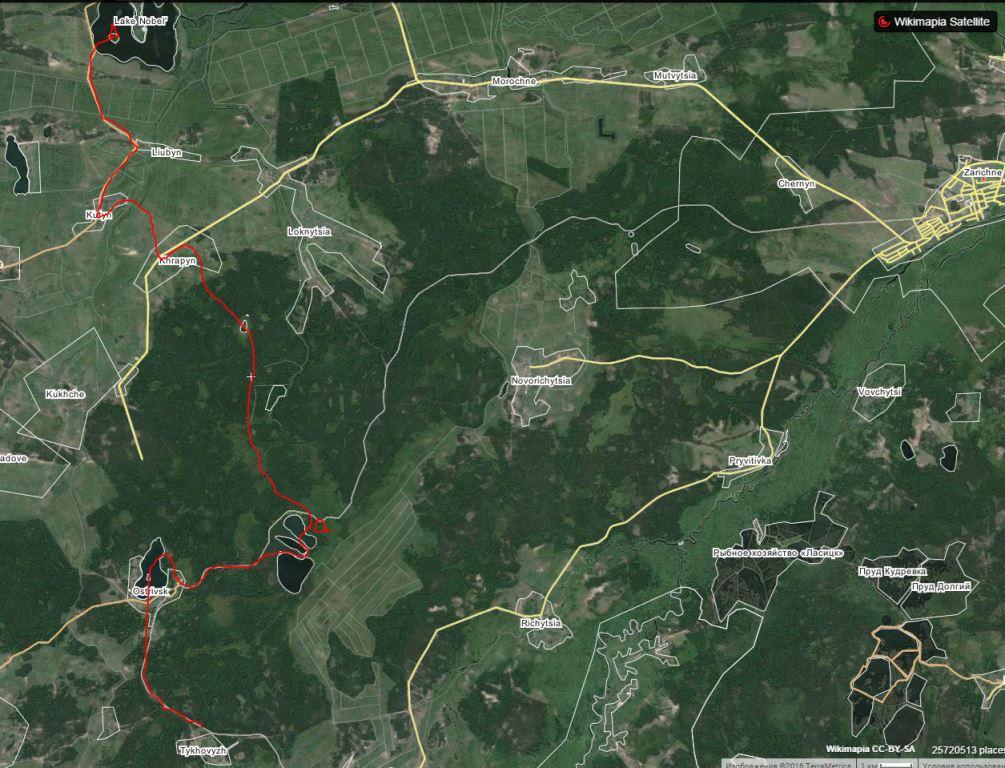 ми вийшли прямо на нього, бо по жпс-у йшли, просто довго вийшло по азимуту, якимись непозначеними дорогами, замерзшими каналами. Уяви, з трьох наявних жпсів: один показує трек і координату, але карта дуже умовна, один збитий на 1.25 км на південь, а на телефоні тільки супутникова карта і немає звязку із супутником. Як ми виходили із такої складної ситуаціїї з жпс-а забивали координати в телефон і дивились по супутниковій фотографії де ми знаходимось.
