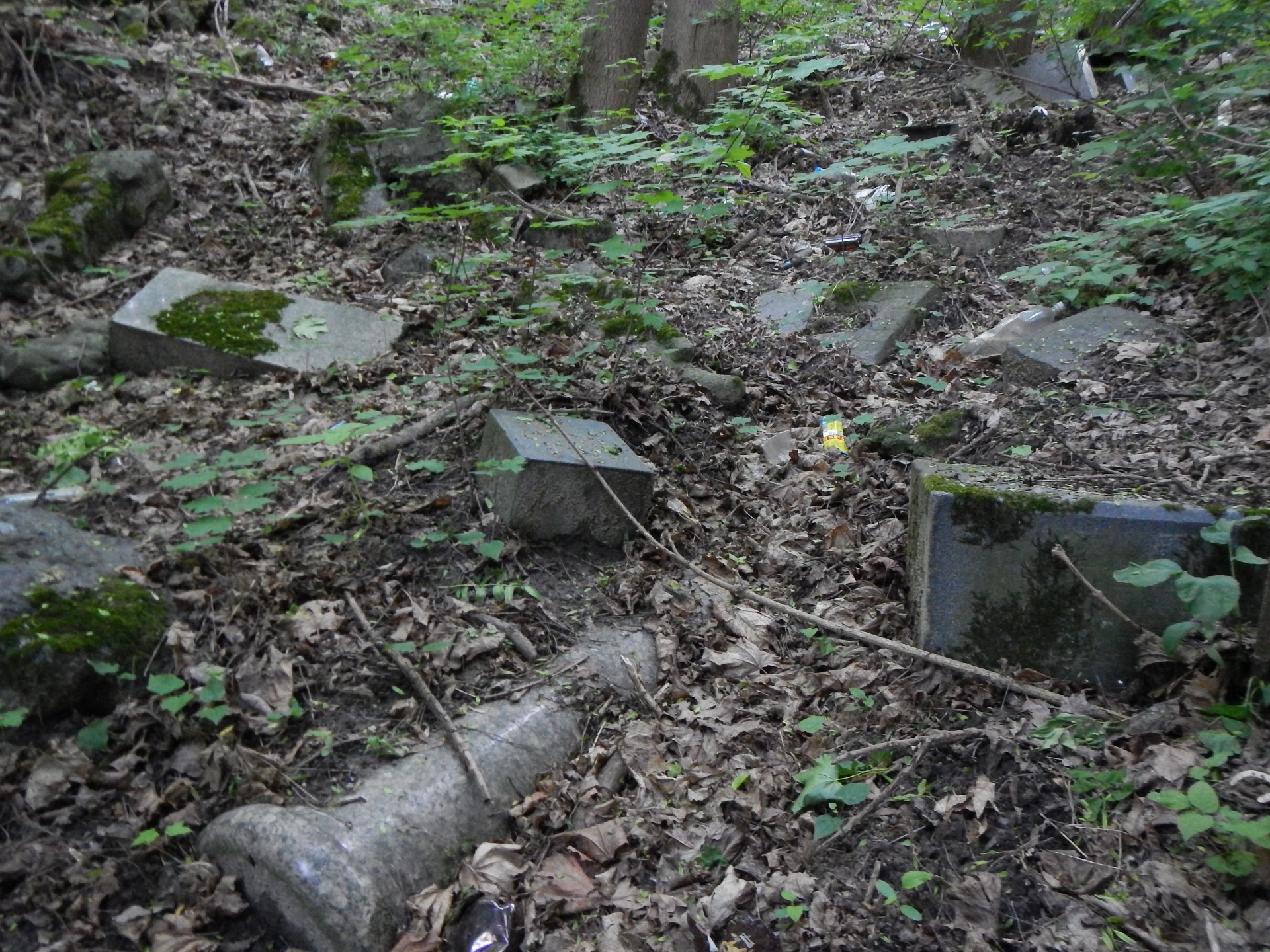 Натомість, значна кількість могильних плит та пам'ятників лежить в яру та на його схилах, серед куп сміття. Фото додаються.